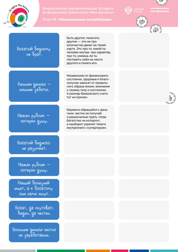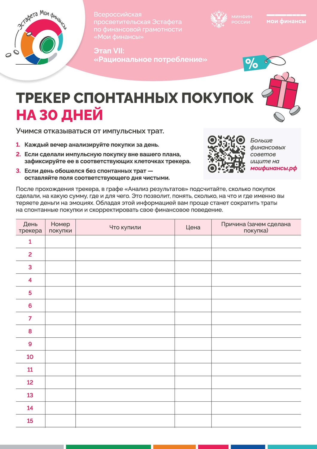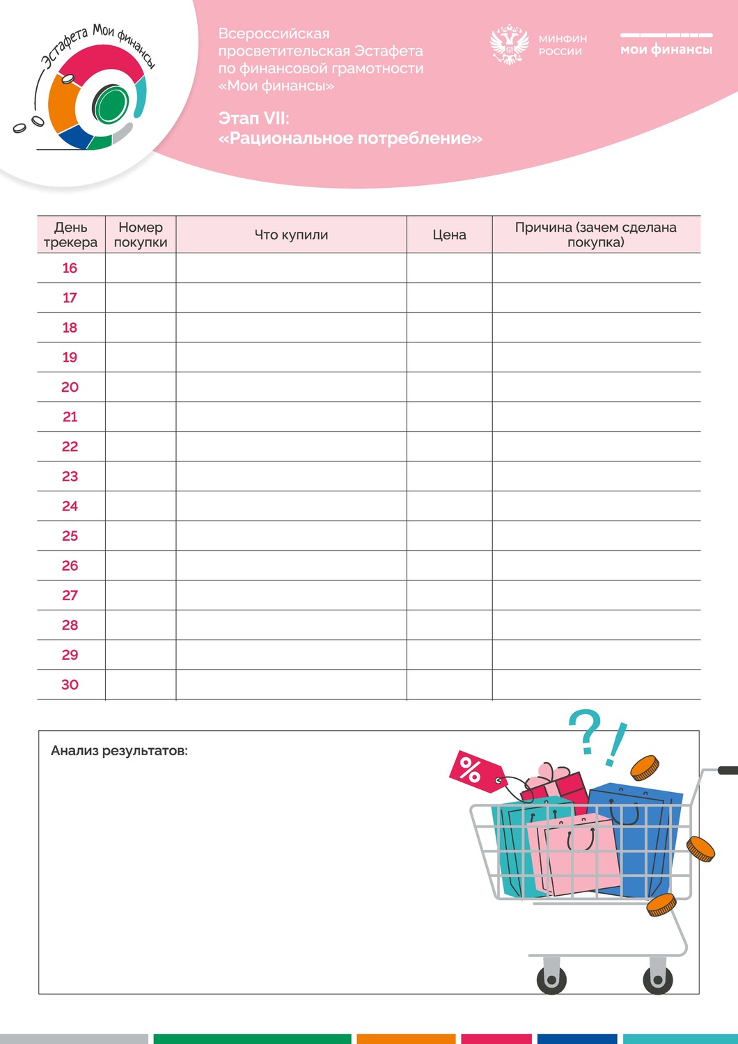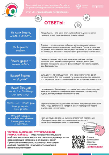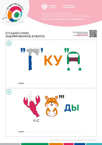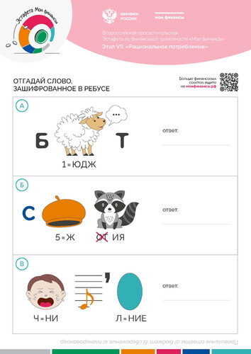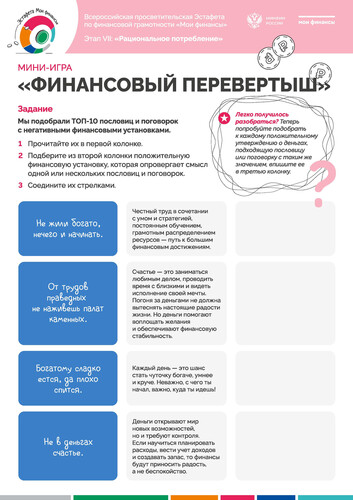 Рациональное потреблениеЖить экологично — не дорого! Ваш гид по переработке: что, как и куда сдаем Мини игра Финансовый перевертыш 7 главных выводов осознанного потребителя Как не нахватать лишнего на распродажах: Раскраска Рациональное потребление Ребусы Трекер спонтанных покупок Как избавиться от ненужных вещей Чек-ап спонтанных покупок