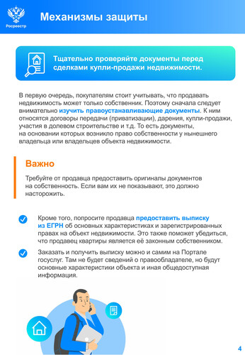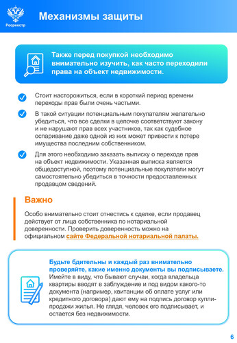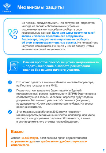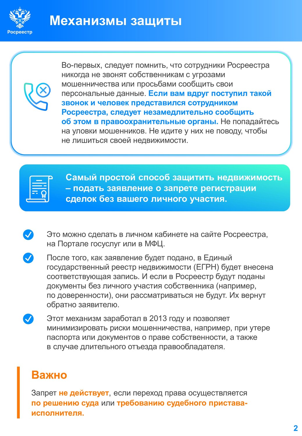 На горячие линии Управления Росреестра по Иркутской области достаточно часто поступают вопросы о подозрительных ситуациях с объектами недвижимости, о случаях подделки документов и о том, какими способами можно защититься от мошенников в сфере недвижимости. Поэтому сегодня мы дадим несколько рекомендаций по обеспечению вашей информационной безопасности и безопасности прав на недвижимость. Эти советы могут помочь вам сохранить ваше имущество, деньги и нервы: - вы в любой момент бесплатно можете подать заявление о невозможности совершения любых регистрационных действий с вашей недвижимостью без вашего личного участия. Это можно сделать в любом офисе МФЦ или в личном кабинете на портале Росреестра. После внесения такой отметки в реестр недвижимости, обращаться за регистрацией сделок, переходов прав сможете только вы лично. - при выдаче доверенности максимально конкретно указывайте полномочия – это то, что вы доверяете сделать своему представителю. Например, можно доверить подать документы на регистрацию, но при этом не давать право подписывать договор, если вы хотите лично поучаствовать в сделке, изучить и подписать документы собственноручно. - не выдавайте доверенность на срок больше необходимого. Если вы выдали доверенность на длительный срок и в ней уже отпала необходимость, не поленитесь и официально отзовите ее, чтобы такая доверенность утратила силу. - помните, что в любой момент вы можете уточнить информацию об объектах недвижимости и о правах, запросив информацию из Единого государственного реестра недвижимости. Кстати, в электронном виде это можно сделать быстрее и дешевле. - всегда указывайте номер своего телефона и адрес электронной почты, когда подаете любые заявления в Управление Росреестра. Тогда в любой подозрительной ситуации государственный регистратор сможет оперативно связаться с вами. - всегда читайте то, что вам предлагают подписать. Важно, чтобы вы точно понимали содержание документа, который вы подписываете. - храните свои документы на недвижимость так, чтобы исключить доступ к ним посторонних людей. - не называйте свои персональные данные, сведения из документов на недвижимость в ходе телефонных разговоров и встреч с посторонними людьми. Пожалуйста, расскажите об этих мерах безопасности наиболее уязвимой категории наших сограждан - родственникам, друзьям и знакомым преклонного возраста. Если остались вопросы, Вы можете позвонить по бесплатному справочному телефону Управления Росреестра по Иркутской области – 8(3952) 450-150.
