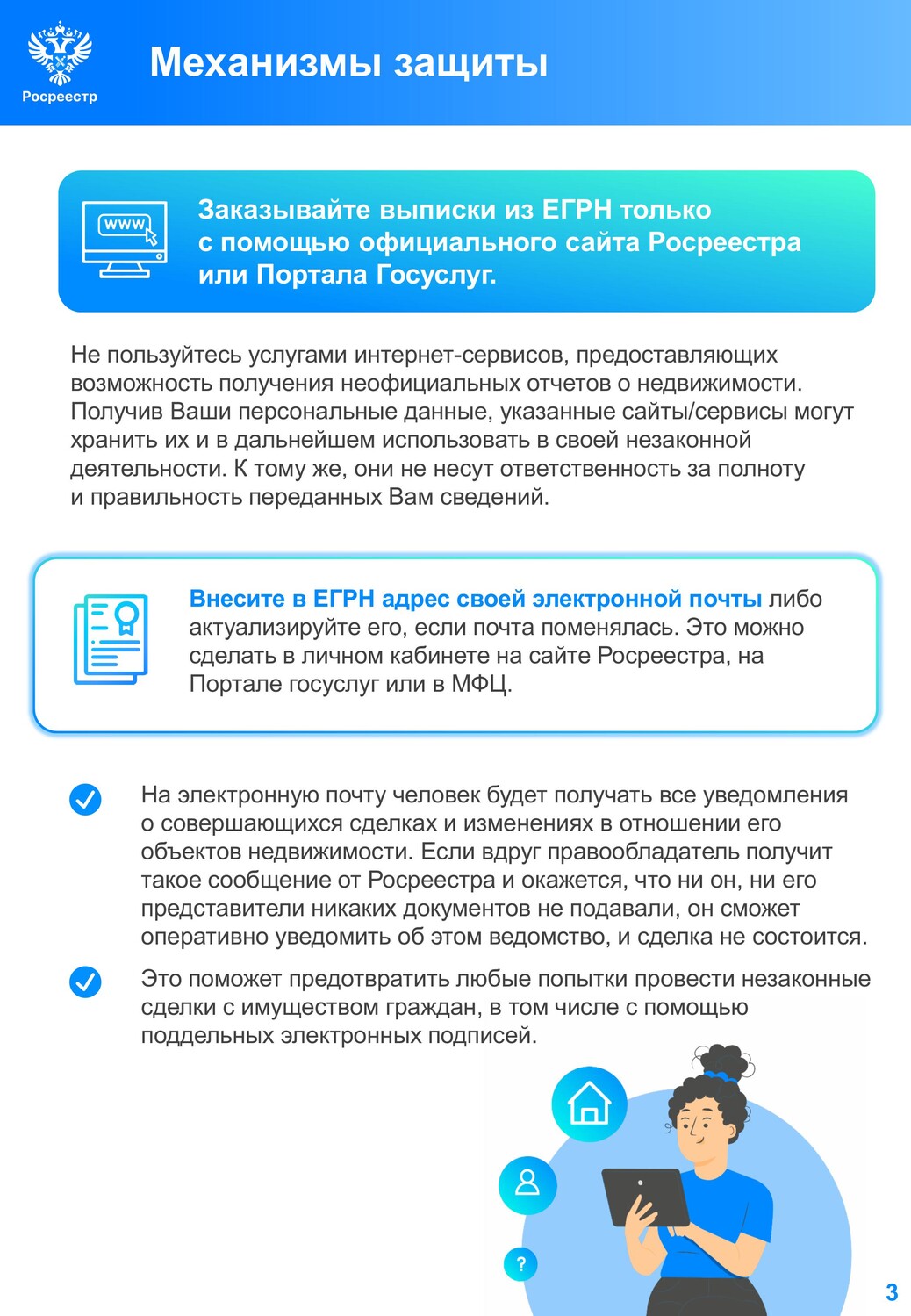 Если адрес вашей электронной почты будет содержаться в ЕГРН, вы сможете оперативно получать уведомления о поступлении документов на регистрацию прав, об исправлении технических и реестровых ошибок, об арестах и запретах, об изменении данных о правообладателе или о характеристиках объекта недвижимости. Быстрое информирование может помочь избежать неприятностей.