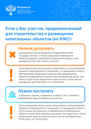 21 апреля 2023 года О снятии с учета участков, права на которые не зарегистрированы Управление Росреестра по Иркутской области напоминает о важном требовании закона – о снятии с учета земельных участков, права на которые вовремя не были зарегистрированы в реестре недвижимости. Закон о регистрации недвижимости устанавливает правило, о котором многие владельцы земельных участков не знают. Между тем, речь идет о крайне серьезном требовании закона: после постановки на кадастровый учет земельного участка, право на такой участок должно быть тоже зарегистрировано. Если же право не будет зарегистрировано в течение 5 лет после постановки на учет, такой участок снимается с учета и официально перестает быть объектом недвижимости. При этом речь идет о необходимости регистрации любого права – собственности, постоянного пользования, безвозмездного пользования, а также аренды. Для Иркутской области эта тема крайне актуальная, ведь на сегодня под действие этого требования закона подпадает около 8 тысяч земельных участков, которые должны быть сняты с кадастрового учета. По словам заместителя руководителя Управления Росреестра по Иркутской области Ларисы Михайловны Варфоломеевой, жители Иркутской области, которые считают, что право на участок регистрировать необязательно, достаточно поставить его на учет и получить кадастровый номер, ошибаются. По прошествии 5-летнего срока такие участки в силу требования закона будут автоматически сняты с кадастрового учета, следовательно, прекратят существование в качестве самостоятельного объекта недвижимости. В такой ситуации процесс постановки участка на кадастровый учет придется начинать заново. Поэтому для того, чтобы избежать новых затрат и не тратить свои силы впустую, рекомендуем регистрировать права на землю одновременно с постановкой участка на кадастровый учет. Если же ваш земельный участок в настоящее время поставлен на кадастровый учет, но право остается незарегистрированным, поспешите оформить право и сохранить свой объект недвижимости на учете. Напомним также, что зарегистрированное право это гарантия защиты ваших интересов, в том числе в имущественных спорах, в судебных органах. Кроме того, зарегистрированное право является условием для совершения сделок, а также для передачи имущества по наследству. Позаботьтесь о своих интересах заранее, зарегистрируйте права на недвижимость вовремя!